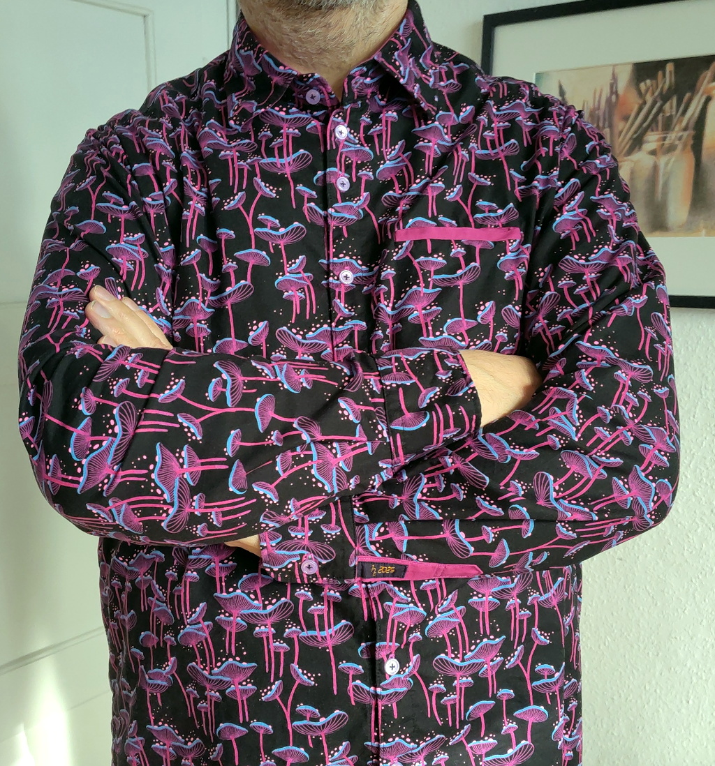 The fabric I used for my first Simon shirt was a perfect single colour match for making inner parts and details, like the welt pocket, the sleeve plackets, and the inside of the cuffs and color.